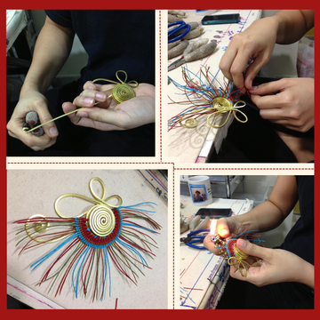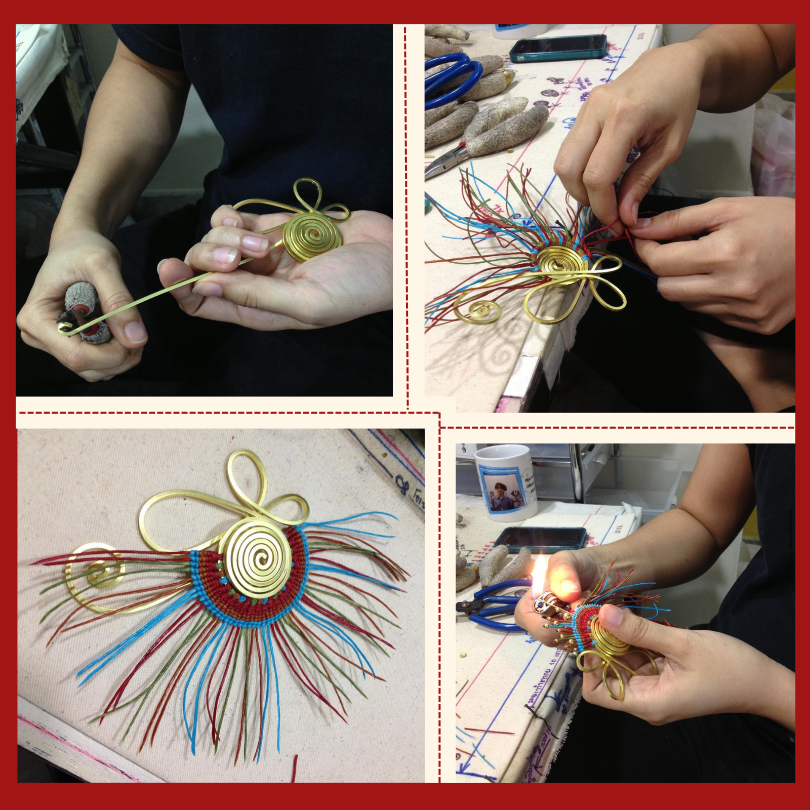 Encouraged by a family member and drawn to the meditative quality of macramé, she began creating jewelry from her home using waxed cords, brass wire, and natural stones. Her work soon gained popularity at local art fairs for its unique blend of softness and structure, standing out with bold brass details and joyful color palettes.
