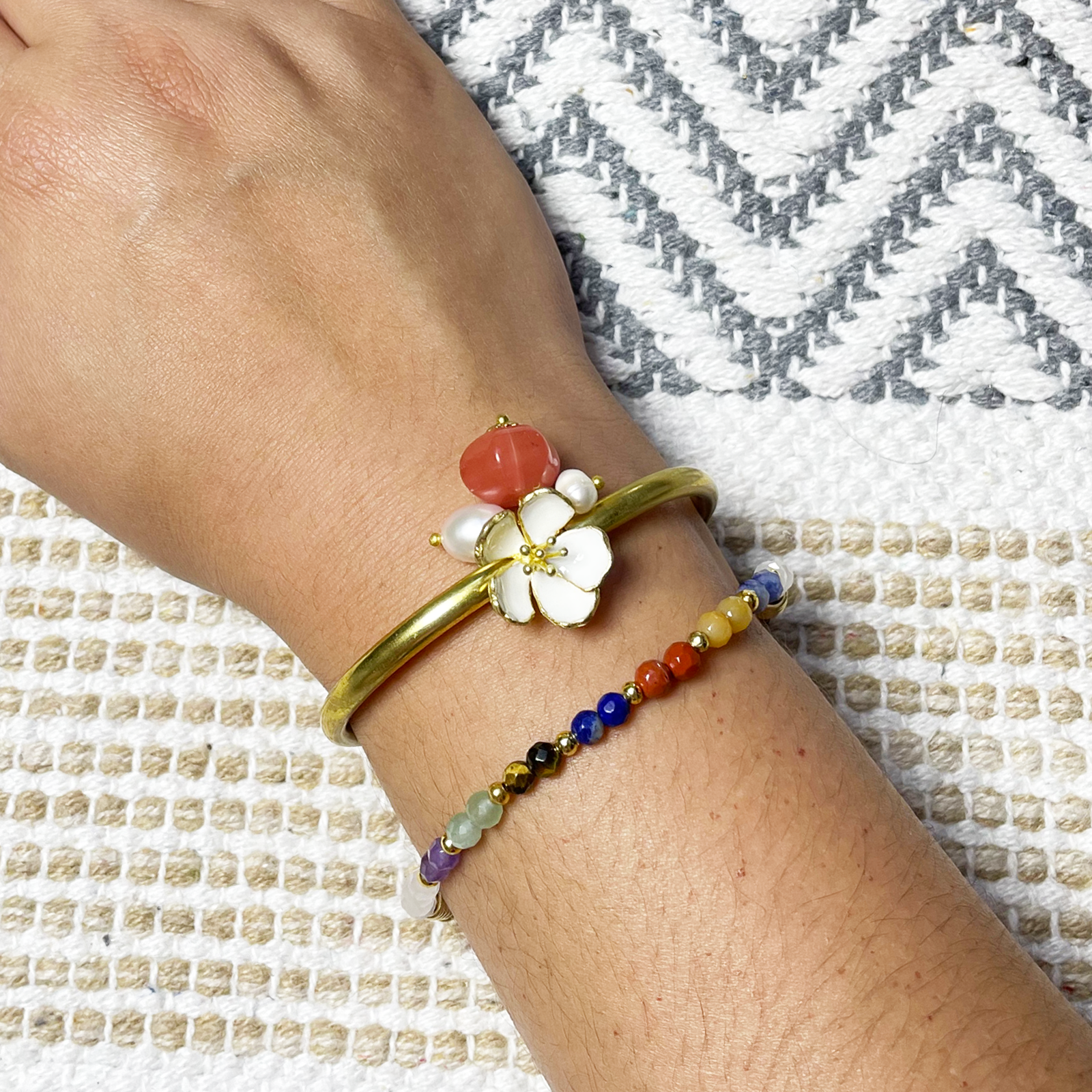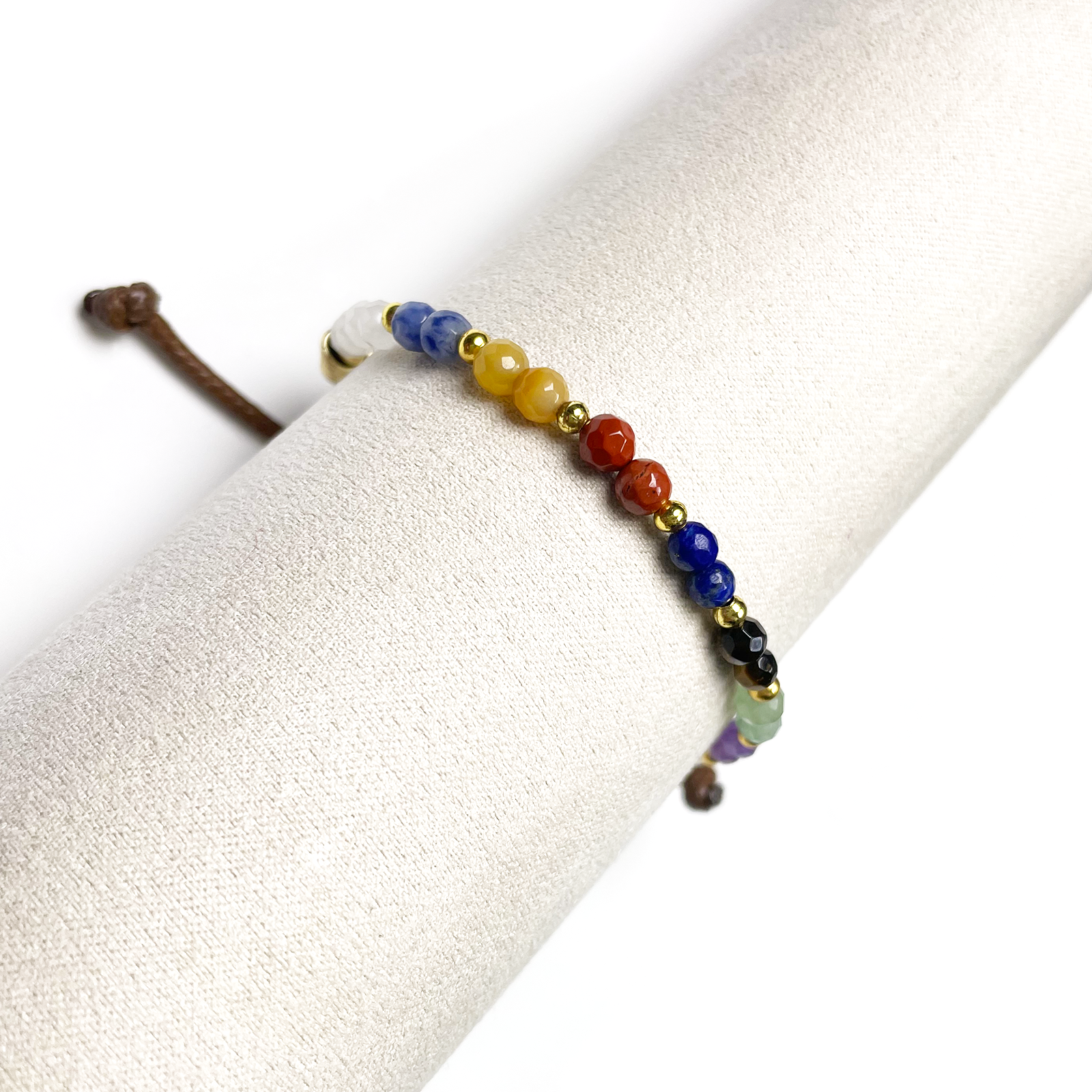 Align your energy with color, clarity, and intention. This handmade bracelet is a radiant harmony of natural gemstones, each representing one of the seven chakras: