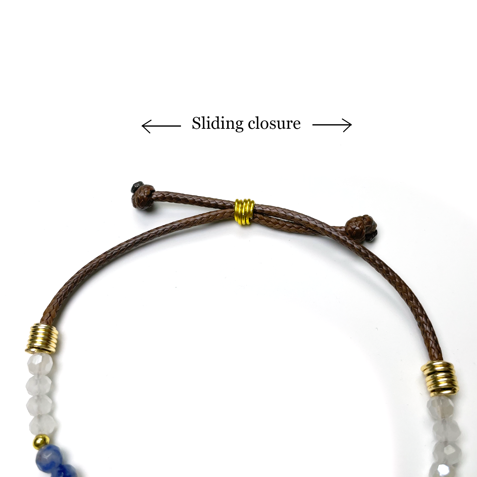 Accented with shimmering brass spacers and strung on a strong cord with an adjustable sliding knot closure, this bracelet blends natural energy with minimalist beauty, made to fit most wrist sizes comfortably.