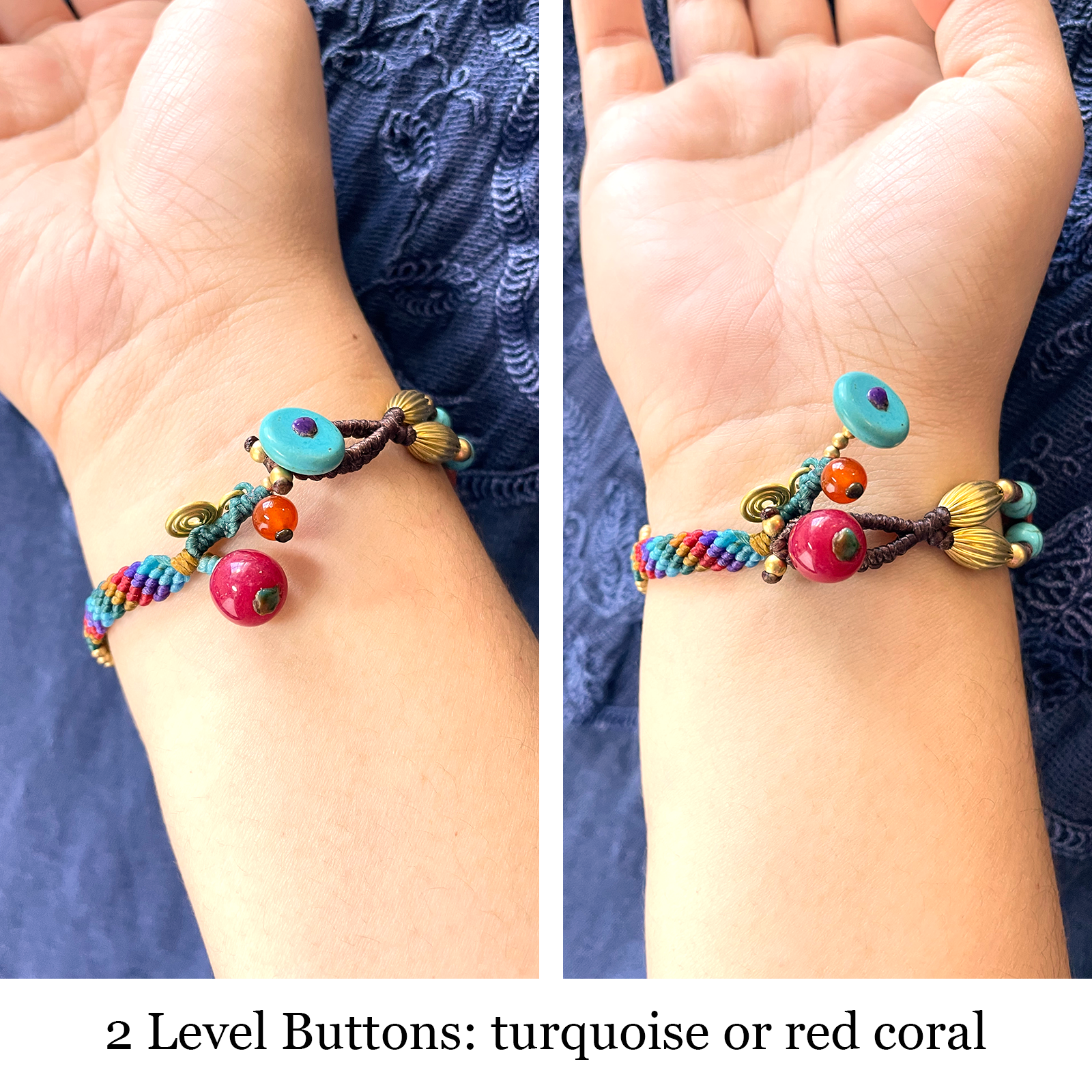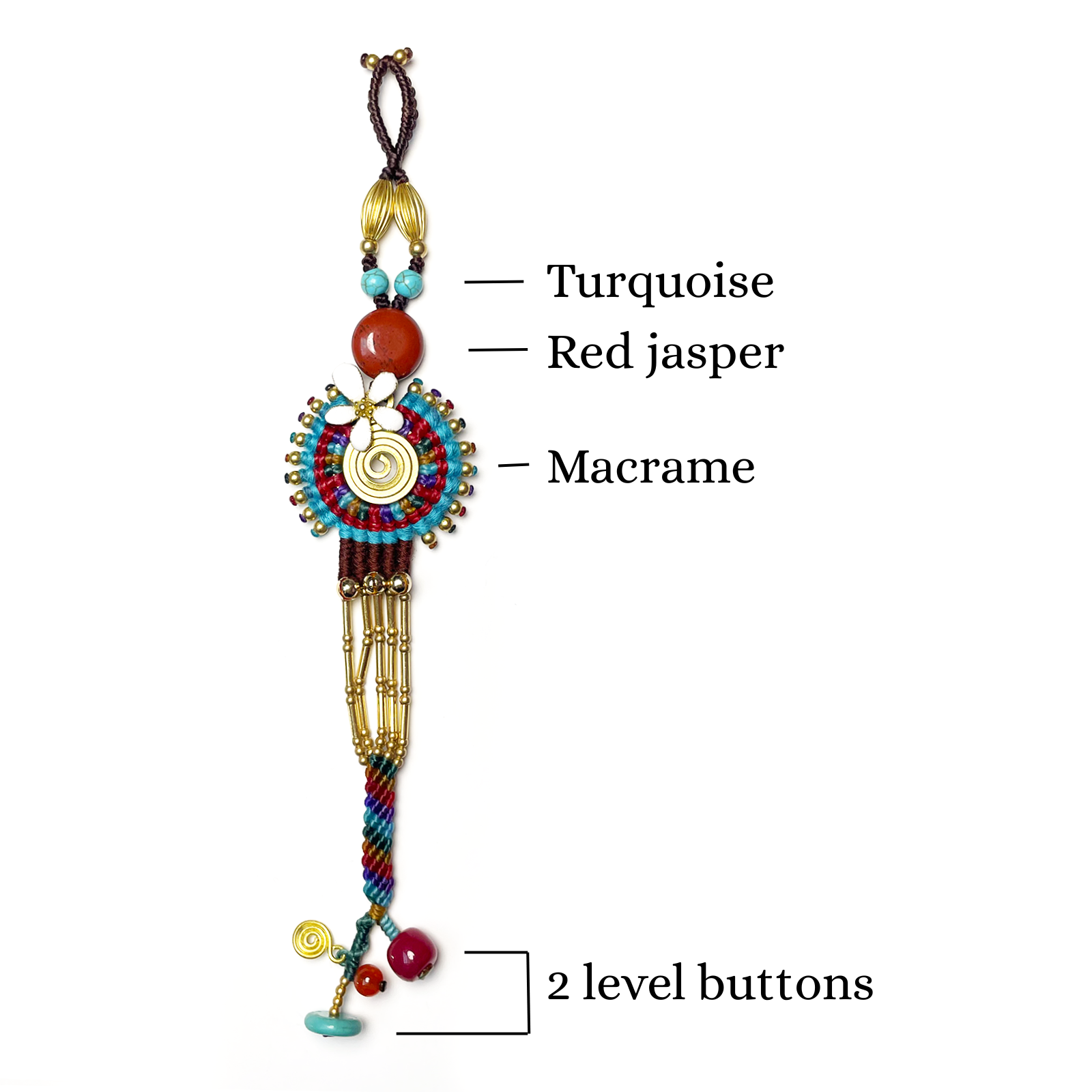 Material: solid brass, waxed cord, red jasper & turquoise gemstones
